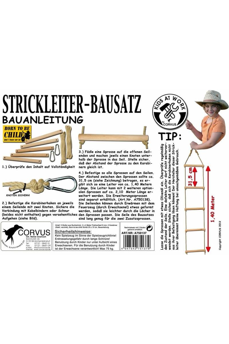 Laat de kleine avonturiers hun eigen Touwladder DIY set van Kids At Work bouwen! Met deze leuke set leren ze op een speelse manier over knopen en constructie. Het stimuleert de fijne motoriek en creativiteit. Eenmaal klaar, kunnen ze hun zelfgemaakte touwladder gebruiken voor spannende ontdekkingstochten in de tuin of speelkamer. Plezier en leerzaamheid gegarandeerd met dit fantastische bouwpakket!