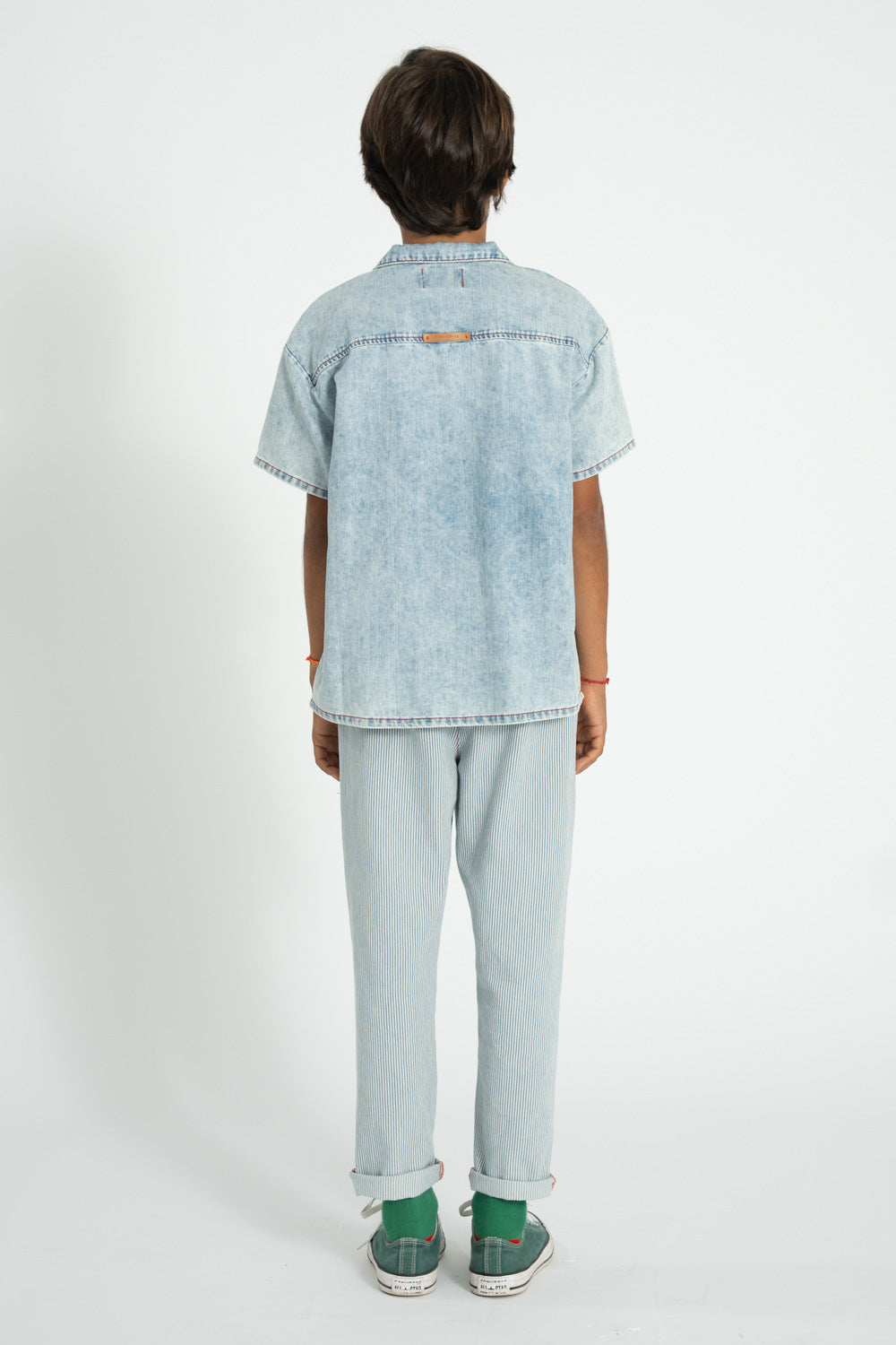 Deze superleuke unisex broek van Piupiuchick is perfect voor elk avontuur! Gemaakt van zacht ecru denim met coole indigostrepen, is hij ideaal om heerlijk in te spelen. Piupiuchick, bekend om hun creativiteit en humor, ontwerpt kleding die verhalen vertelt en generaties verbindt. De broek is gemaakt van 100% katoen in Portugal. Een must-have voor de Spring/Summer '26 collectie!