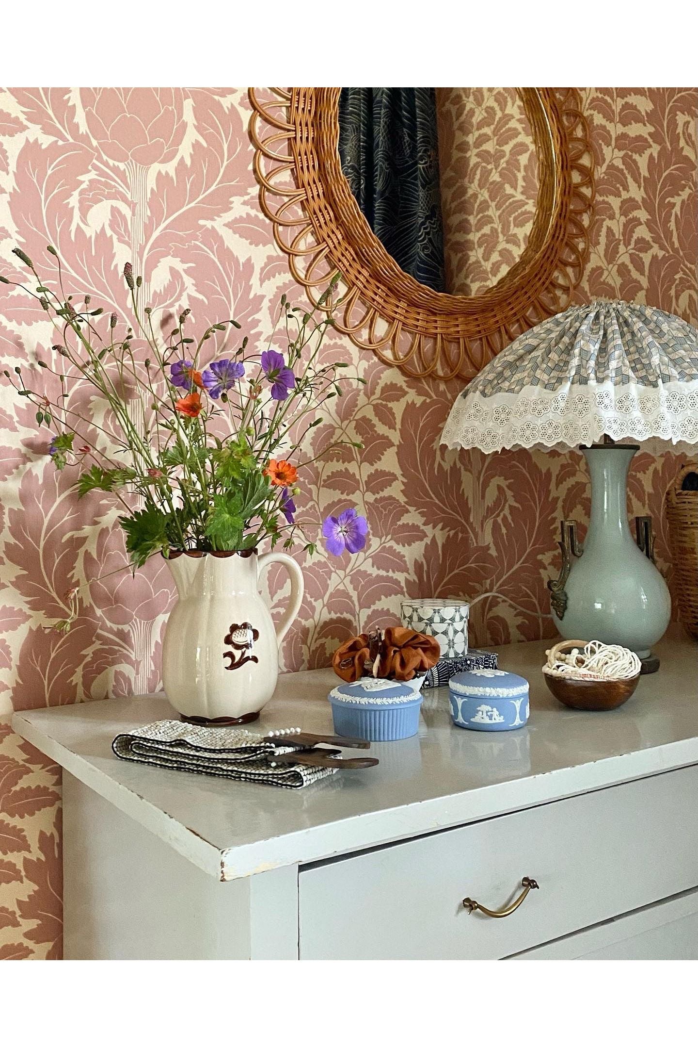 Ontdek het beeldschone 'Artichoke - Rose Tea' behang van Långelid / von Brömssen! Dit charmante vliesbehang tovert je muur om met een sierlijke artisjokprint. Långelid / von Brömssen staat bekend om hun unieke, handgeschilderde designs en rijke kleuren. Dit behang, met een traditionele oppervlaktedruk, heeft een betoverende diepte en glans. Een liefdevol kunstwerk voor elke kinderkamer of speelse ruimte!