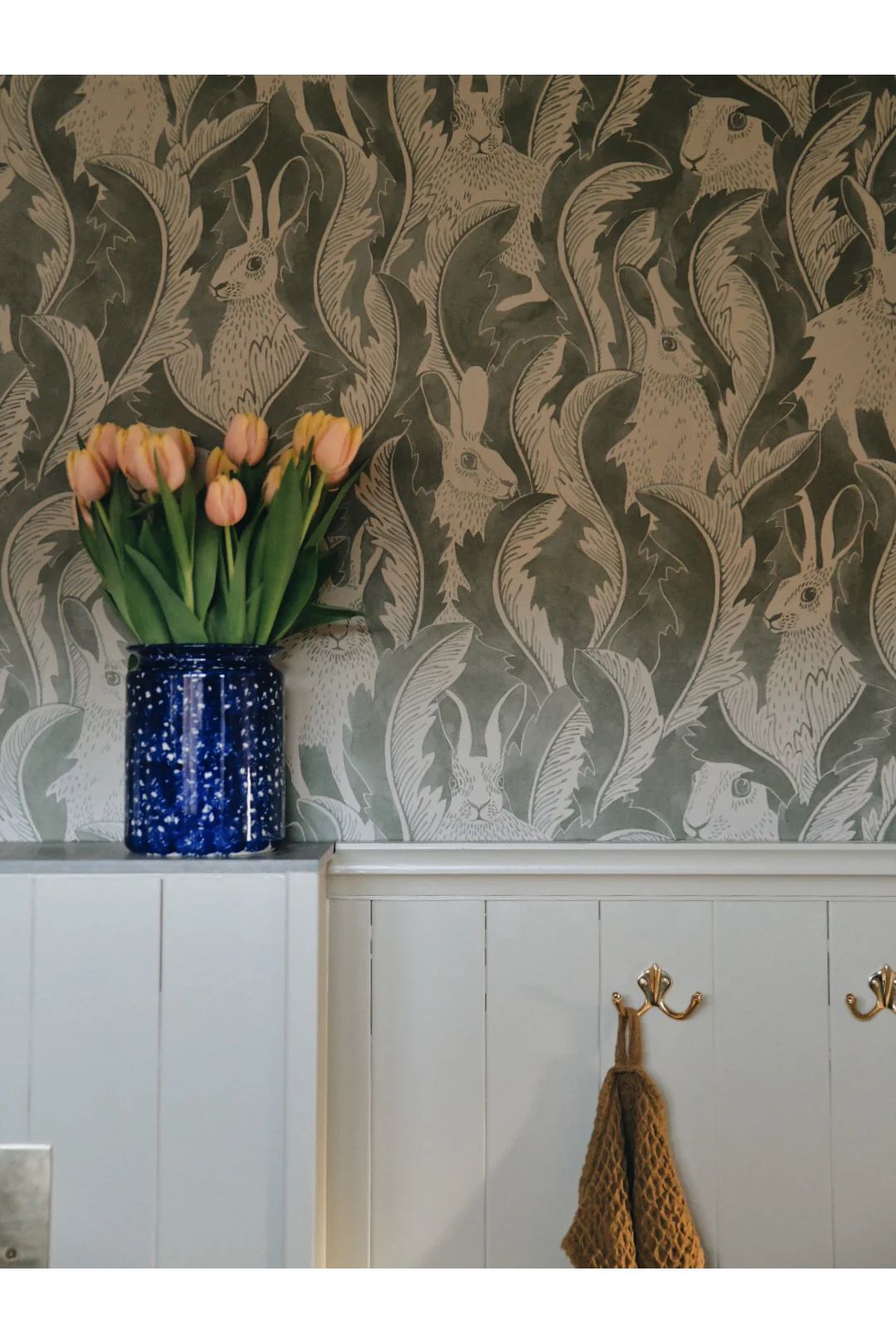 Ontdek het betoverende "Hares In Hiding - Aloe" behang van Långelid / von Brömssen! Deze prachtige creatie, geïnspireerd op sprookjes, laat schattige en mysterieuze hazen tot leven komen op je muur. Het Zweedse merk staat bekend om hun unieke, handgeschilderde designs en rijke kleuren. Dit vliesbehang, geproduceerd met traditionele druktechnieken, geeft een vloeiend en levendig effect. Een speelse en tijdloze toevoeging voor elke kinderkamer of speelhoek!
