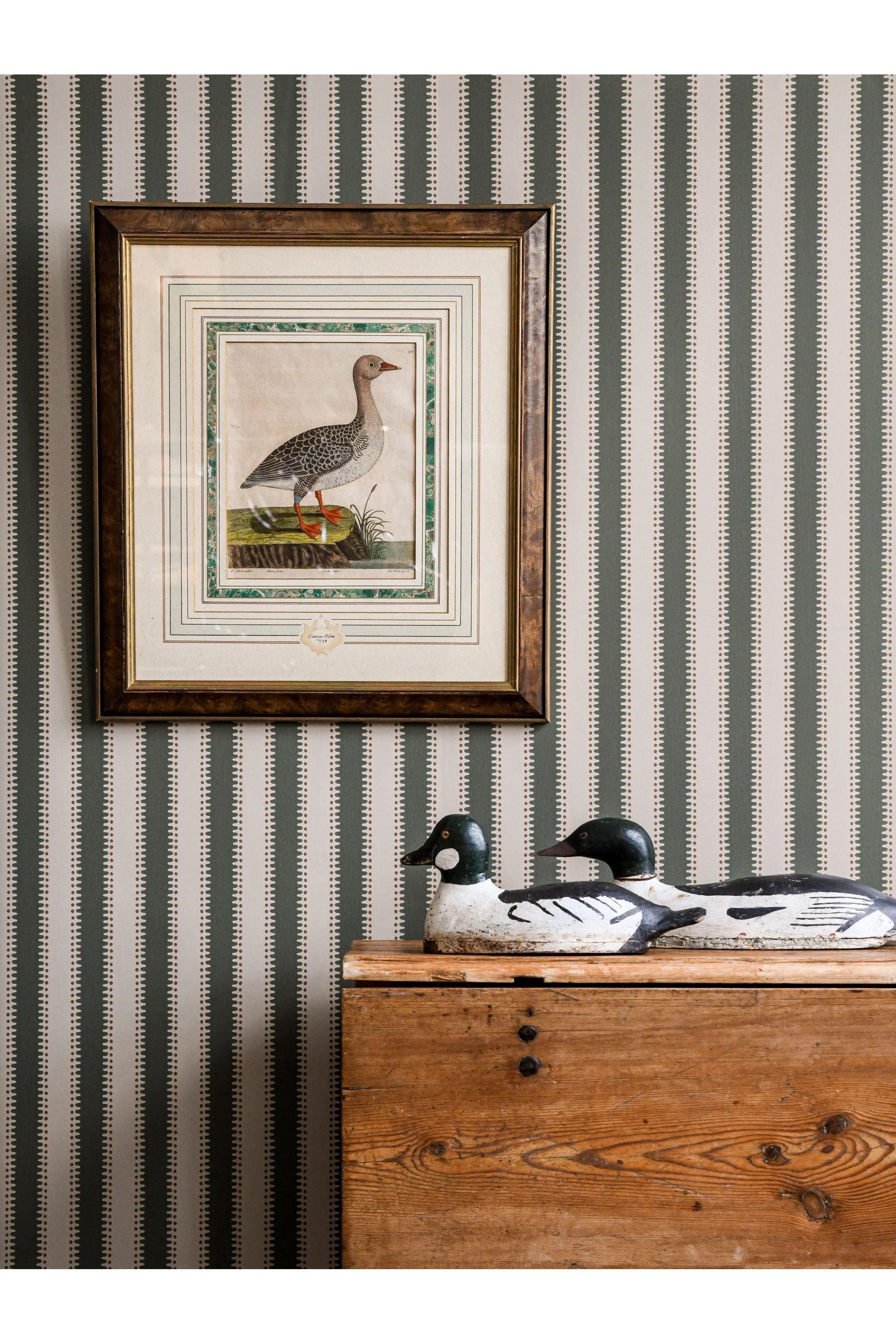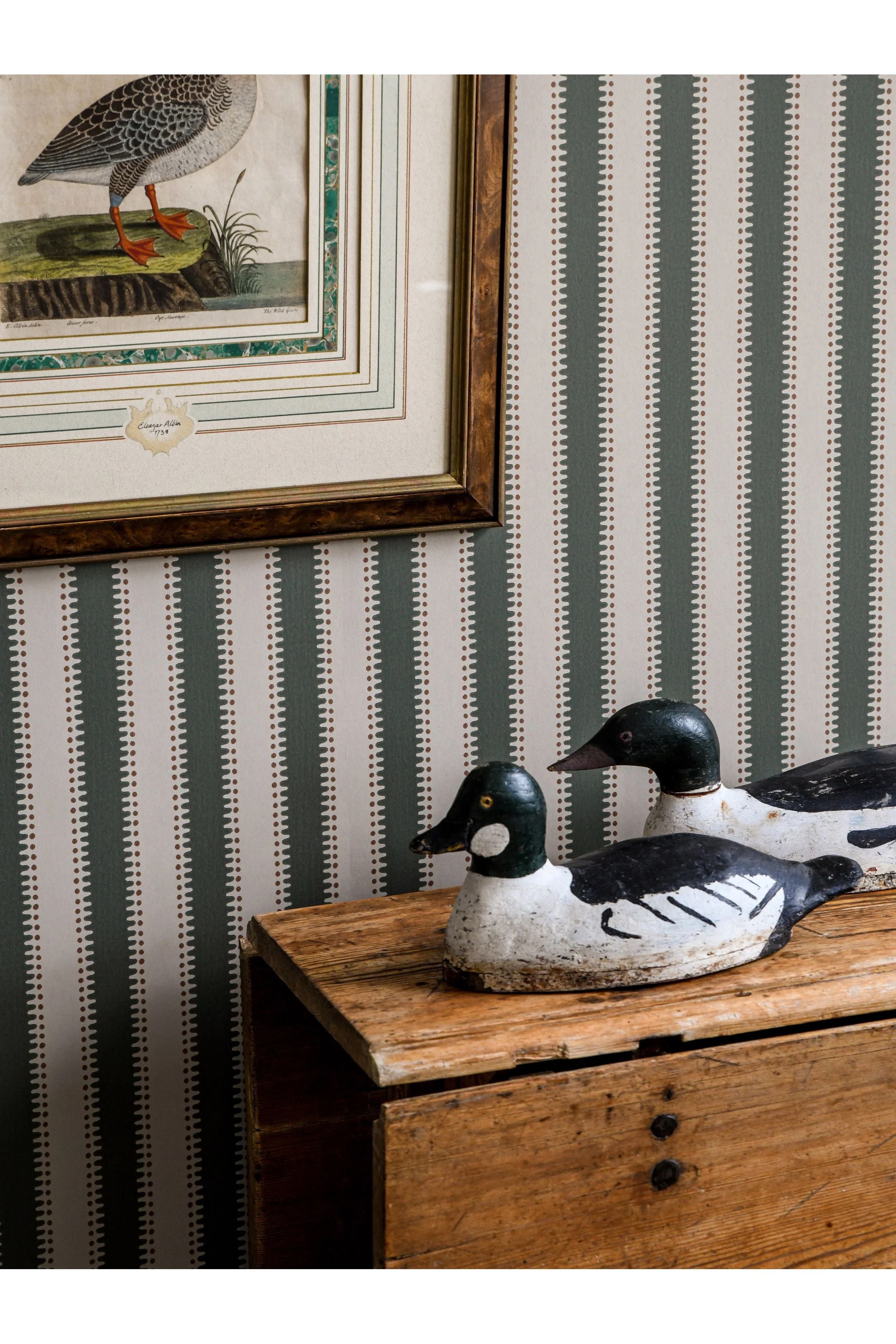 Geef je muur een speelse touch met het Wallpaper Jagged Stripe - Dusty Olive van Långelid / von Brömssen! Dit prachtige behang tovert gekartelde strepen en lieve stippen om in een zachte, decoratieve print. Het Zweedse merk Långelid / von Brömssen staat bekend om hun handgeschilderde designs en rijke kleuren. Dit vliesbehang, gemaakt met traditionele druktechnieken, zorgt voor een levendig en uniek effect. Een vrolijke en stijlvolle keuze voor elke kamer!