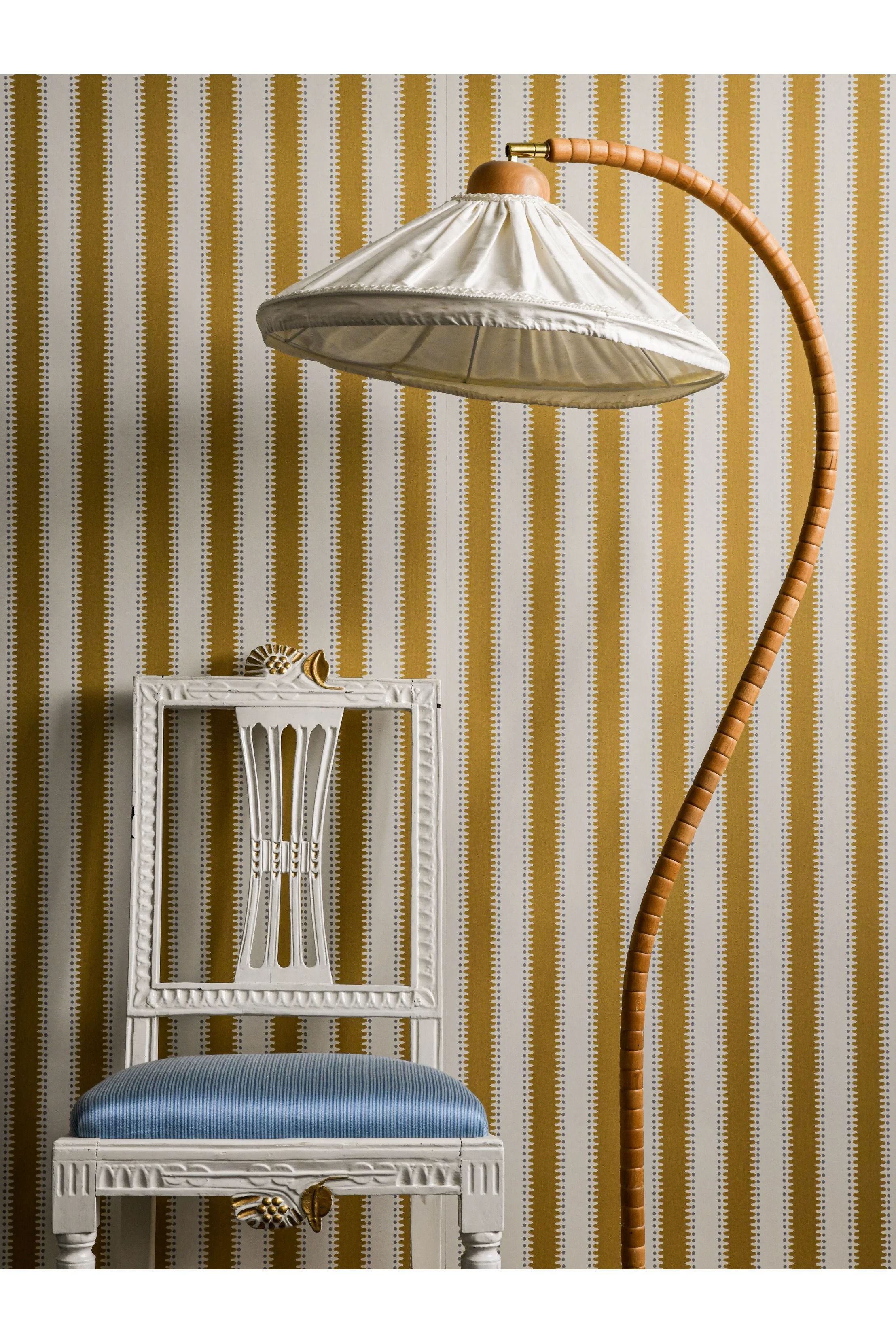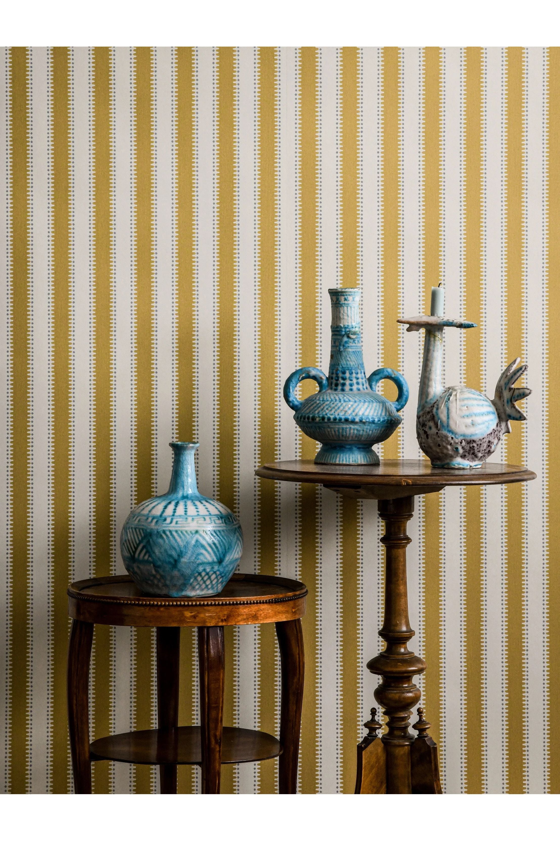 Ontdek het vrolijke "Jagged Stripe Mustard" behang van Långelid / von Brömssen! Dit speelse patroon tovert elke kinderkamer of speelhoek om met zijn zachte, gekartelde strepen en charmante stippen. Het Zweedse merk staat bekend om zijn handgeschilderde ontwerpen en rijke kleuren, wat zorgt voor een unieke diepte. Een liefdevol geproduceerd vliesbehang dat je muur een vloeiende en levendige uitstraling geeft.