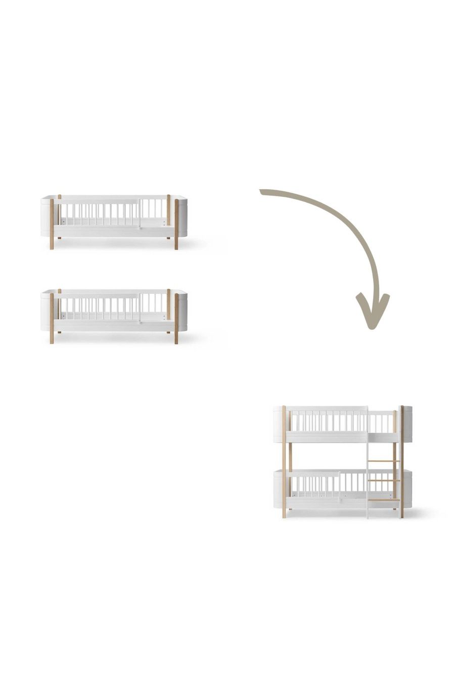 Breid je Wood Mini+ Junior bedden uit en maak er een supergezellig laag stapelbed van met deze slimme ombouwset! Oliver Furniture gelooft in esthetische duurzaamheid, wat betekent dat dit meubel meegroeit met je gezin. Met deze set tover je twee Mini+ Junior bedden om tot een compact en veilig stapelbed. Perfect voor broertjes of zusjes die graag samen slapen. Gemaakt van massief en gegoten berkenhout met prachtige poten van wit geolied eiken. Het Scandinavische ontwerp met de kenmerkende strakke lijnen en ronde vormen maakt dit een aanwinst voor de baby- of kinderkamer. Zo creëer je een veilige en stabiele basis voor jarenlang speelplezier en heerlijke dromen!
