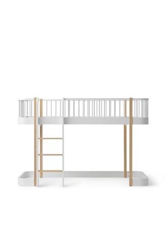 Leuke Wood Original low loft bed 138 cm, 90x200 cm, white/oak