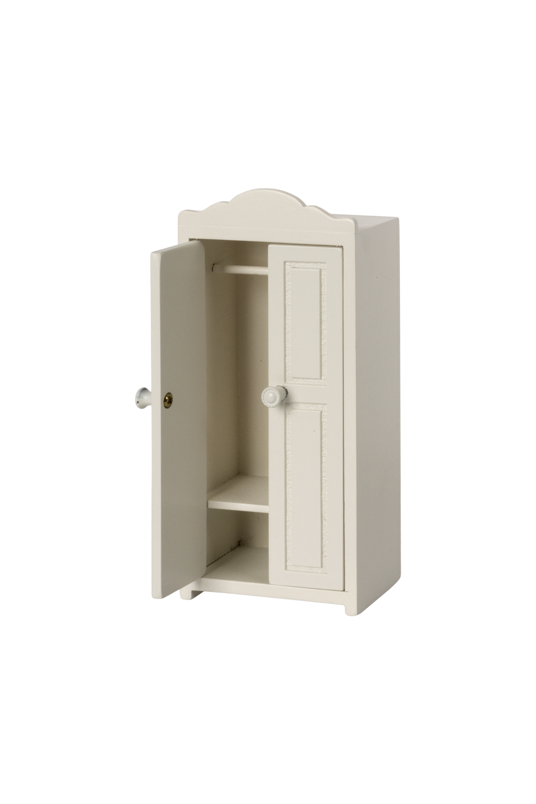 Laat de kleertjes van Maileg-muisjes netjes opbergen met de charmante Maileg Houten Kledingkast! Dit schattige off-white kastje, gemaakt van duurzaam hout, is perfect voor kleine handjes. Inclusief drie gouden hangers om de favoriete outfits van je muisje aan op te hangen. Een heerlijke toevoeging aan elk poppenhuis, stimuleert het fantasierijk spel en helpt bij het organiseren. Een tijdloos stuk dat generaties lang meegaat en elke kinderkamer verrijkt.