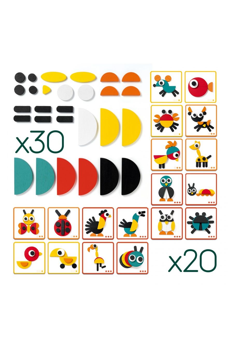 Ontdek de fantastische Ze Geoanimo bouwset van Djeco! Deze 3D houten blokken en tangramstukken zijn perfect voor kleine bouwers vanaf 3 jaar. De set bevat 29 uniek gevormde stukken en 20 opdrachtkaarten om leuke dieren te creëren. Het is een superleuke manier om de fijne motoriek, logisch denken en probleemoplossend vermogen te ontwikkelen. Djeco staat garant voor topkwaliteit, niet-giftige materialen die aan alle veiligheidsnormen voldoen. Eindeloos speelplezier gegarandeerd!